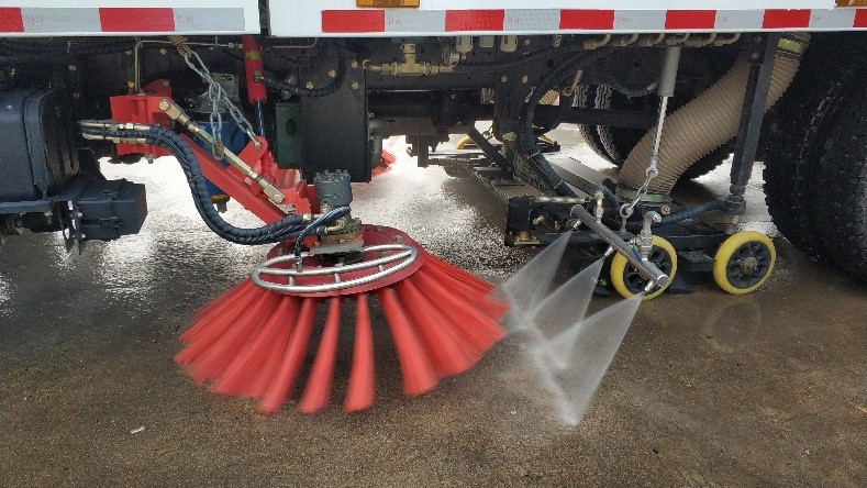 粉塵有著傳統掃路車、灑水車、高壓清洗車無 法做到的清潔功能,能在一次作業中完成清 掃、高壓清洗和垃圾、污水收集,而且具有高