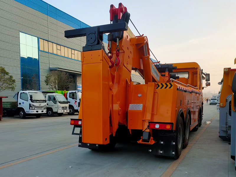 陜汽前四后八一拖一,國六排放,黃色標(biāo)準(zhǔn)駕駛室, 400L鋁合金油箱、中控鎖,濰柴400馬力發(fā)動機(jī),12檔變速箱 后橋:MAN16T 雙級,軸距:1800+3975+1400,車架:850×300(8+5),輪胎:12.00R20-18PR。 30噸連體式上裝,進(jìn)口閥,2個15噸液壓絞盤,三節(jié)式伸縮型后托臂,二節(jié)式六邊形吊臂,分體式工具箱,雙側(cè)聯(lián)動操作裝置,配后工作燈,肆套鋼叉一套拖叉,一套鋼板吊耳拖叉,一套抱胎裝置,**氣管總成一套,捆綁鏈條!帶無線遙控。
