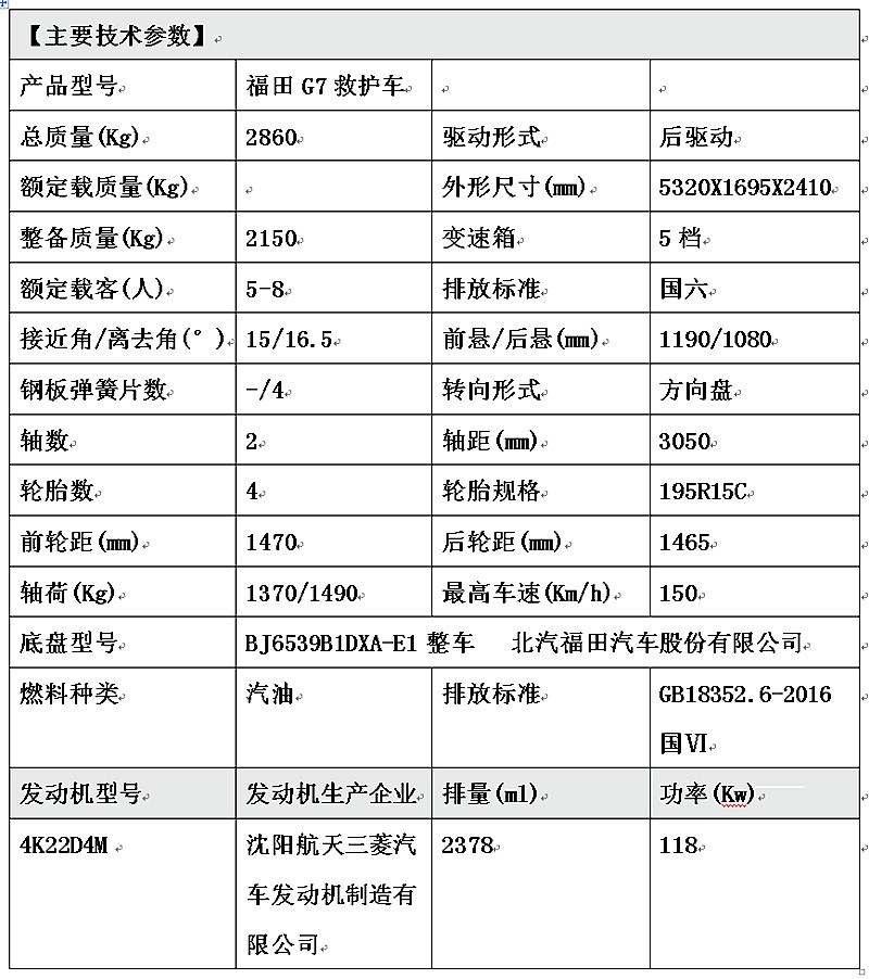 福田G7長軸救護車